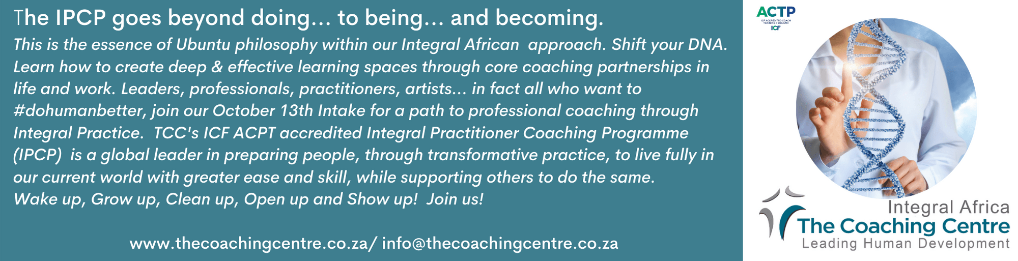 Dr Paddy Pampallis (Doctorate in Exec. Coaching) is a deeply experienced integral practitioner supporting people through comprehensive and inclusive means to be and #dohumanbetter. She is a registered psychologist, professional coach and supervisor. A pioneer in the coaching profession she is a founder member of COMENSA and other bodies. She is the CEO of Integral Africa: The Coaching Centre having developed and run the Integral Practitioner Coaching Training Programme for 20 years. TCC works with many organisations at leadership level. Paddy is an invited speaker, research partner, author, accrediting board member of the World Association of Business Coaches. Ultimately, she is passionate about the growth of human consciousness. info@thecoachingcentre.co.za