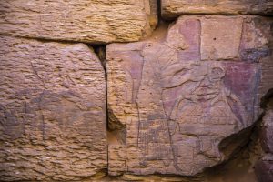 A pyramid excavated at Meroë included hundreds of heavy items such as large blocks decorated with rock art and 390 stones that comprised the pyramid. A cow buried complete with eye ointment was also unearthed in the area to be flooded by the Meroë Dam, as were ringing rocks that were tapped to create a melodic sound.