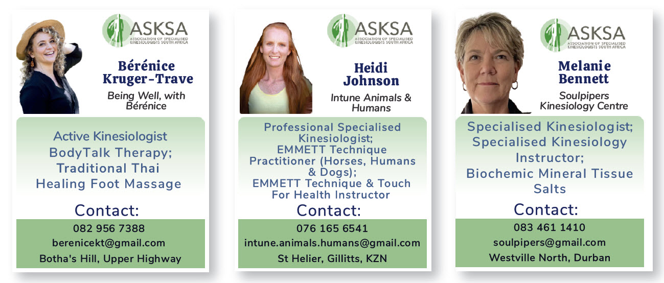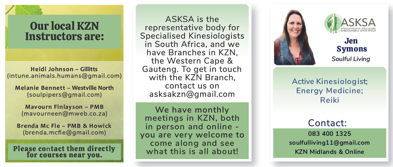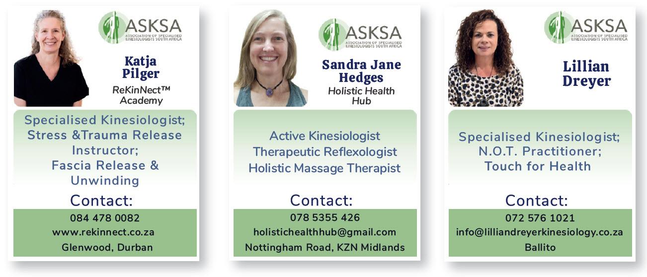 Kinesiology was originally developed by the American chiropractor Dr George Goodheart in the 1960s to enhance and improve the quality of his treatments. It has since evolved into many different branches, all based on the scientific, neurological workings of the body and, in South Africa, these modalities include Touch for Health (TFH), Emotional Kinesiology, Neuro-Training, Neural Organisation Technique (NOT) and Stress Indicator Point System (SIPS).