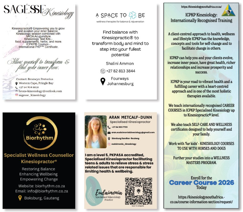 For the public, choosing a PKPASA-registered practitioner means peace of mind. Each member has completed rigorous international training through the International College of Professional Kinesiology Practice (ICPKP), adheres to a strict Code of Conduct, and is supported by a professional body that ensures accountability and ethical practice. Clients can be confident that they are working with someone committed to addressing the root causes of imbalance – whether stress, fatigue, trauma, or physical discomfort rather than merely masking symptoms. With PKPASA’s searchable directory, finding a qualified practitioner nearby is simple and reassuring For practitioners, belonging to PKPASA is more than a formality; it is a professional milestone. Membership brings credibility, visibility, and recognition, while also offering a supportive community of peers. Through affiliation with the Association for Supportive Counsellors and Holistic Practitioners (ASCHP), PKPASA provides a legally recognised professional pathway aligned with South Africa’s National Qualifications Framework. This ensures not only legitimacy but also career sustainability. Ongoing development through conferences, workshops, and peer networks keeps members inspired and aligned with best practices.