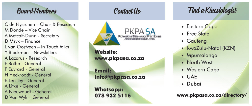 Ultimately, PKPASA serves as the bridge between practitioners and the public, ensuring that Kinesiopractic® practitioners in South Africa practise with integrity, excellence, and heart. Whether you are seeking healing or offering it, PKPASA is where professionalism meets purpose.